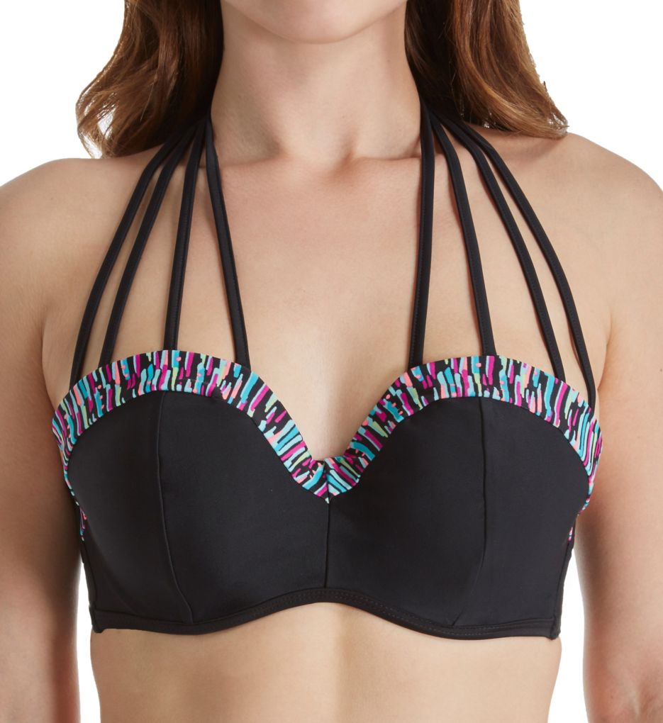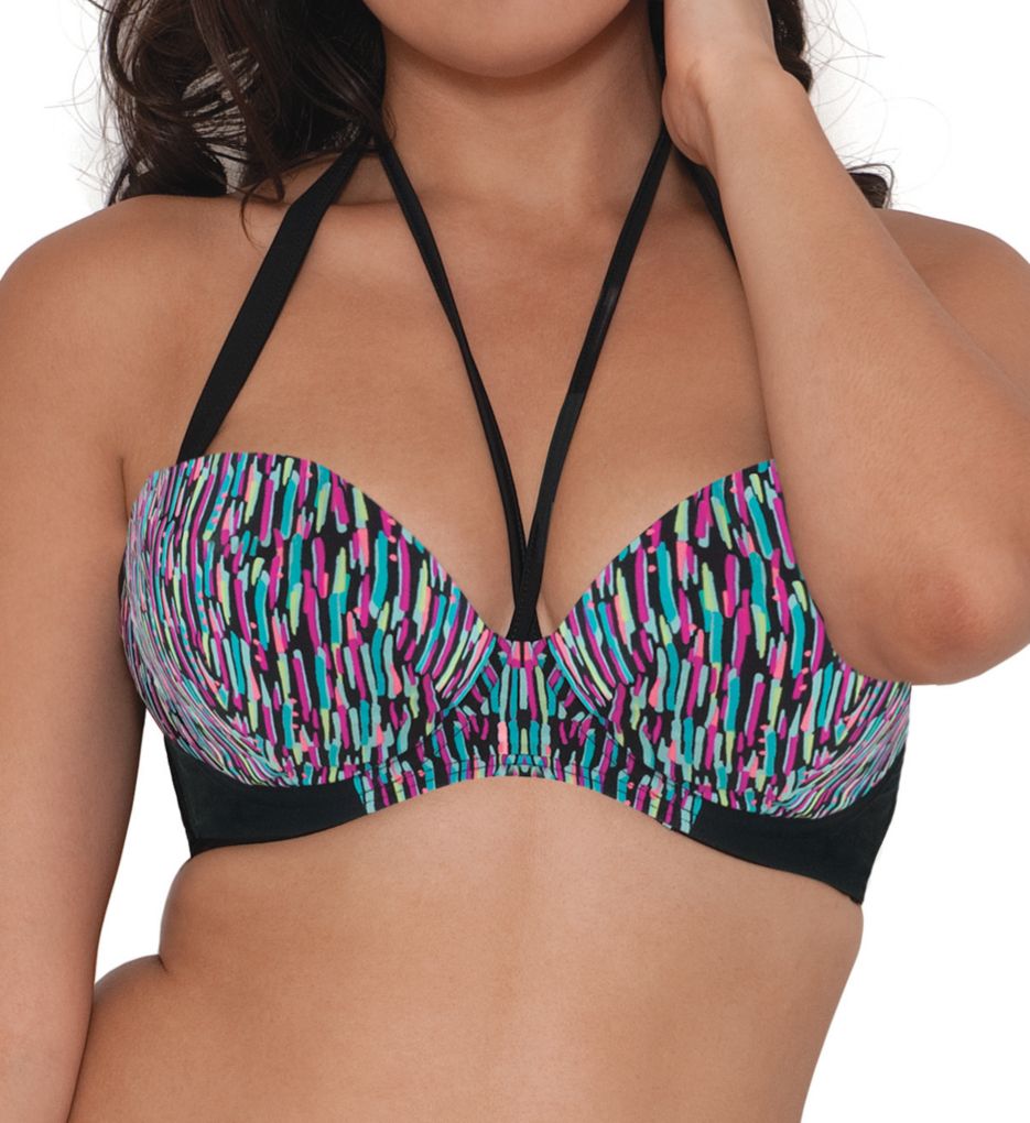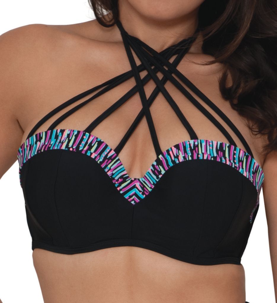 S4A’s Black Ruffle Sarong Skirtini’s pretty ruffled accent continues on to its relatively deep scoop back.This feminine and beautifully draping style provides molded, wire-free, cups on a plus underband encircling shelf bra. The straps appear to be non-adjustable.